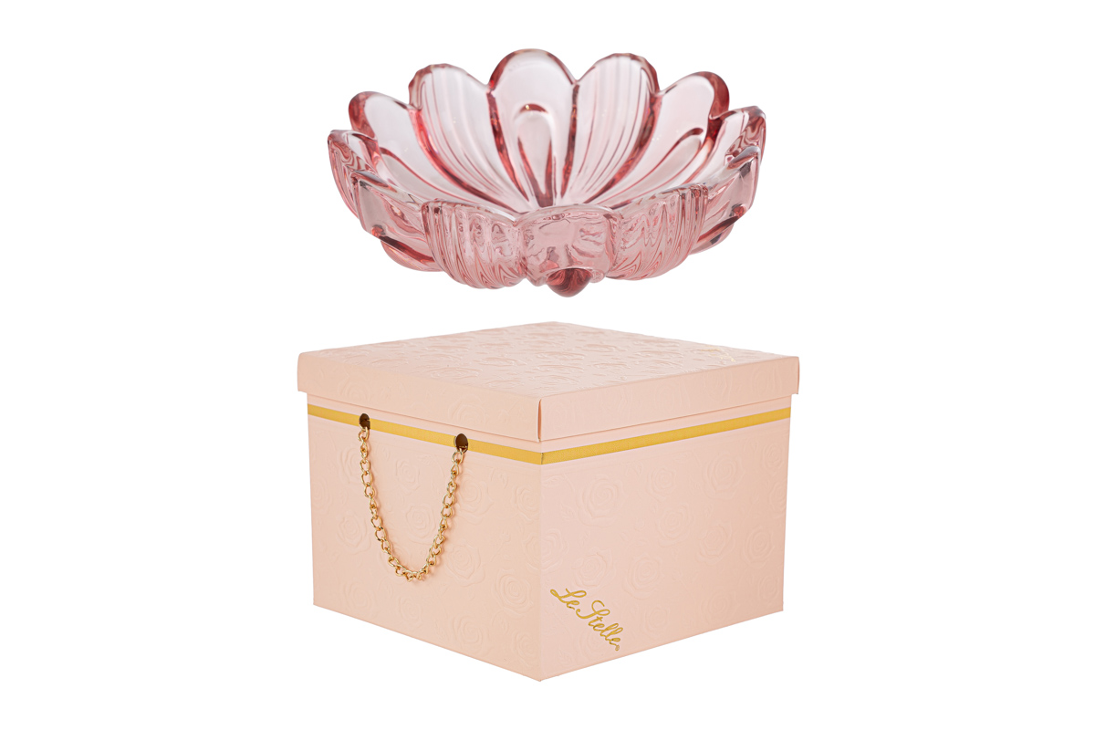 La coppetta Fiore in vetro ciliegia unisce eleganza e raffinatezza, presentando un design floreale con finitura rosa delicata. Le dimensioni compatte di 14x14x4 cm la rendono ideale come bomboniera per matrimonio, valorizzando qualsiasi allestimento. La confezione regalo coordinata aggiunge un tocco di pregio, perfetto per occasioni speciali. Realizzata in vetro, offre luminosità e resistenza, adatta a contenere piccoli confetti o oggetti ricordo, diventando un ricordo prezioso per gli invitati.