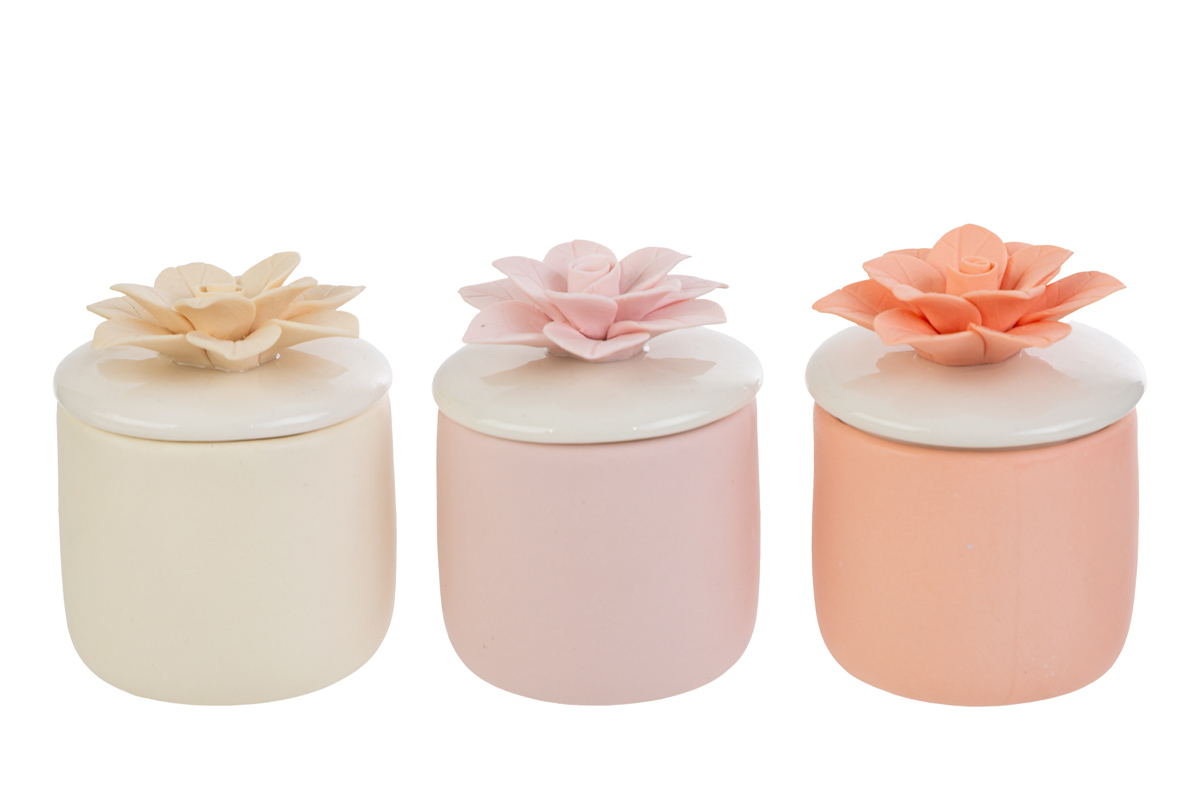 Queste bomboniere in porcellana, proposte in tre colori assortiti, sono pensate per aggiungere un tocco raffinato al matrimonio. Ogni scatola presenta una linea moderna e pulita, valorizzata dal coperchio decorato con un fiore stilizzato. Ideali per contenere confetti o piccoli omaggi, assicurano una presentazione elegante grazie all'astuccio abbinato. Le dimensioni compatte, 8,5 X 8,5 xh.11,5 cm, facilitano l'inserimento nei diversi allestimenti della cerimonia mantenendo armonia e praticità.IL DECORO NON SI PUO SCEGLERE EVENTUALMENTE ARRIVERANNO ASSORTITI