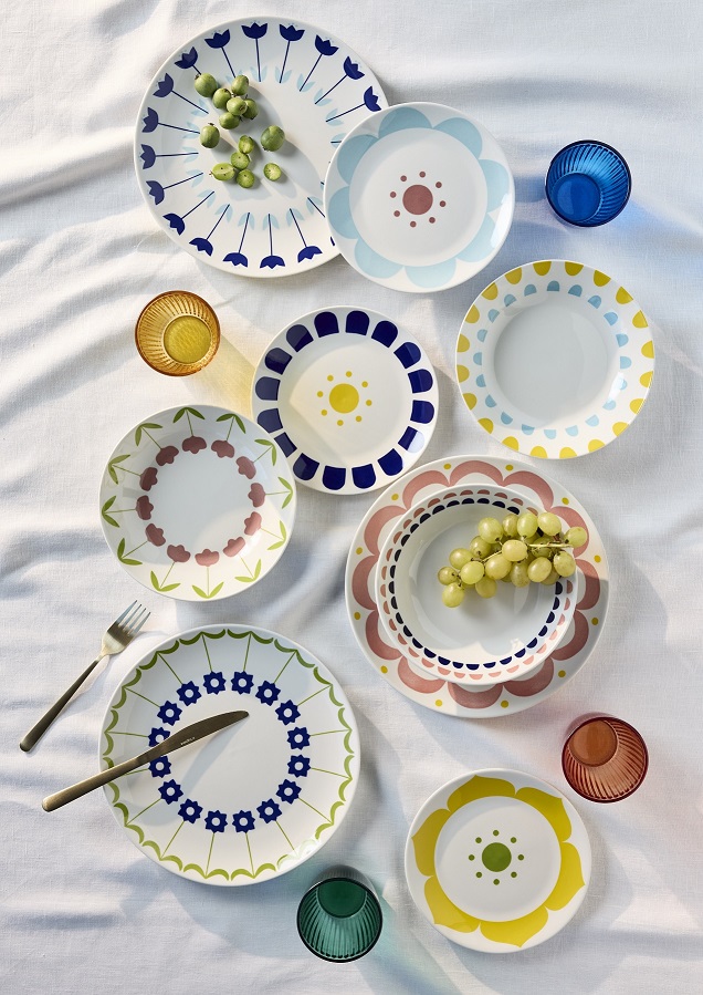 Servizio 18 pezzi composto da 2 piatti piani blu, 2 piatti piani rossi, 2 piatti piani verdi, 2 piatti fondi rosso/blu, 2 piatti fondi giallo/azzurro, 2 piatti fodni verde/ rosso, 2 piatti dessert blu, 2 piatti dessert azzurri, 2 piatti dessert gialli Tognana porcellana