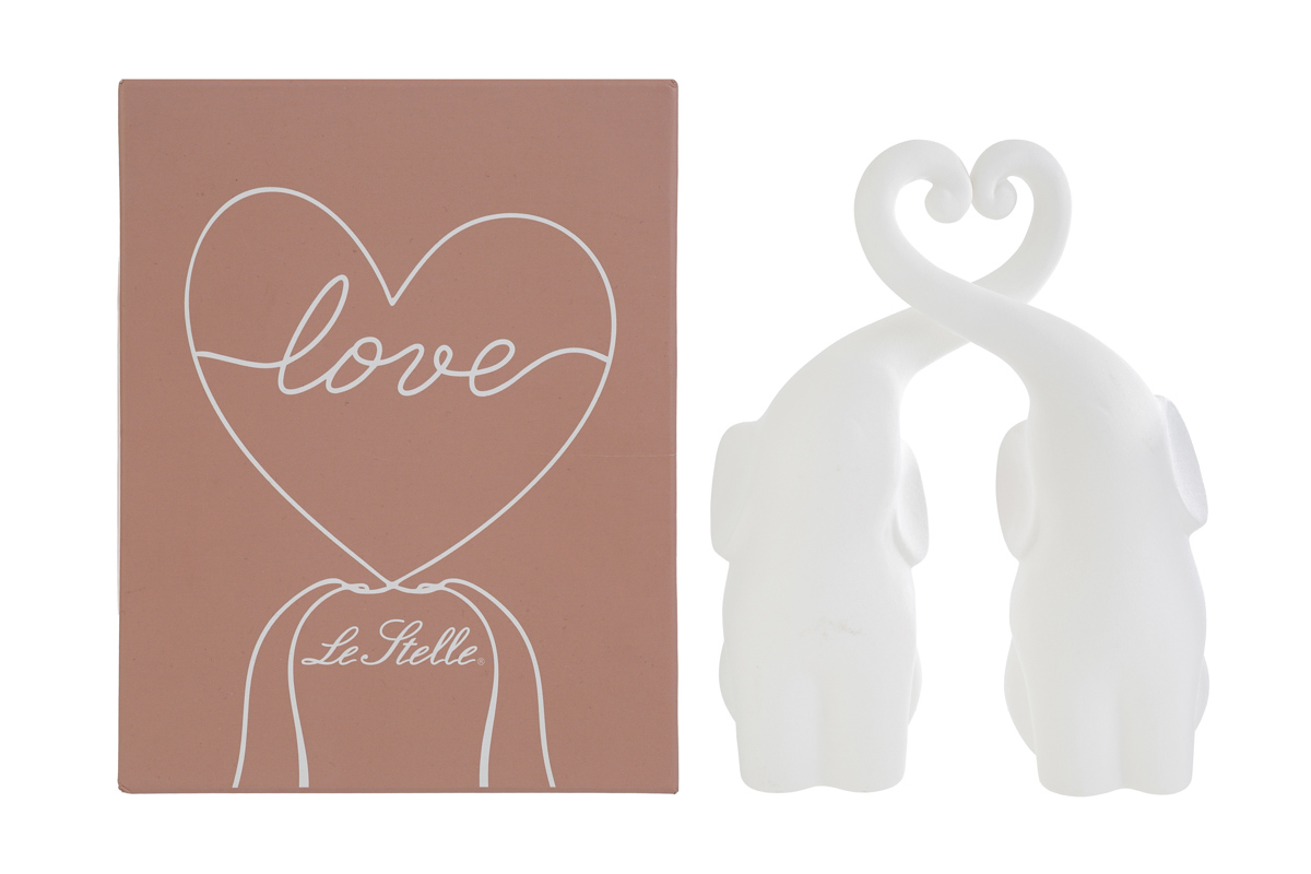 Questo set comprende due elefantini in porcellana bianca, dalle linee moderne e dettagli raffinati, con dimensioni compatte di 5 x 9 x altezza 16 cm. La confezione è curata da un astuccio elegante, ideale per una presentazione sobria. Pensati come bomboniere per battesimo, offrono un significato simbolico di fortuna e protezione. Il design a coppia, con proboscidi che si intrecciano a formare un cuore, rende questi oggetti una scelta adatta anche come decorazione o dono commemorativo. La porcellana garantisce resistenza e facilità di pulizia, adattandosi a diversi stili di arredo.le stelle bomboniere