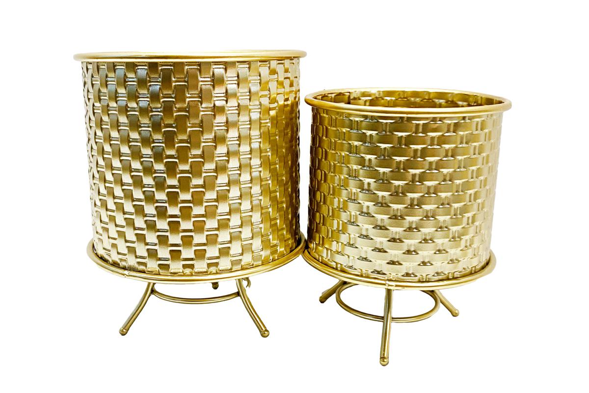 SET 2 PZ PORTAPIANTE METALLO ORO d.25xh.31CM Questi eleganti portapiante in metallo dorato, con un diametro di 25 cm e un altezza di 31 cm, sono la scelta perfetta per aggiungere un tocco sofisticato al vostro spazio. La struttura intrecciata offre una robustezza unica, garantendo durata nel tempo senza rinunciare allo stile. Perfetti sia per l'uso interno che esterno. le stelle bomboniere