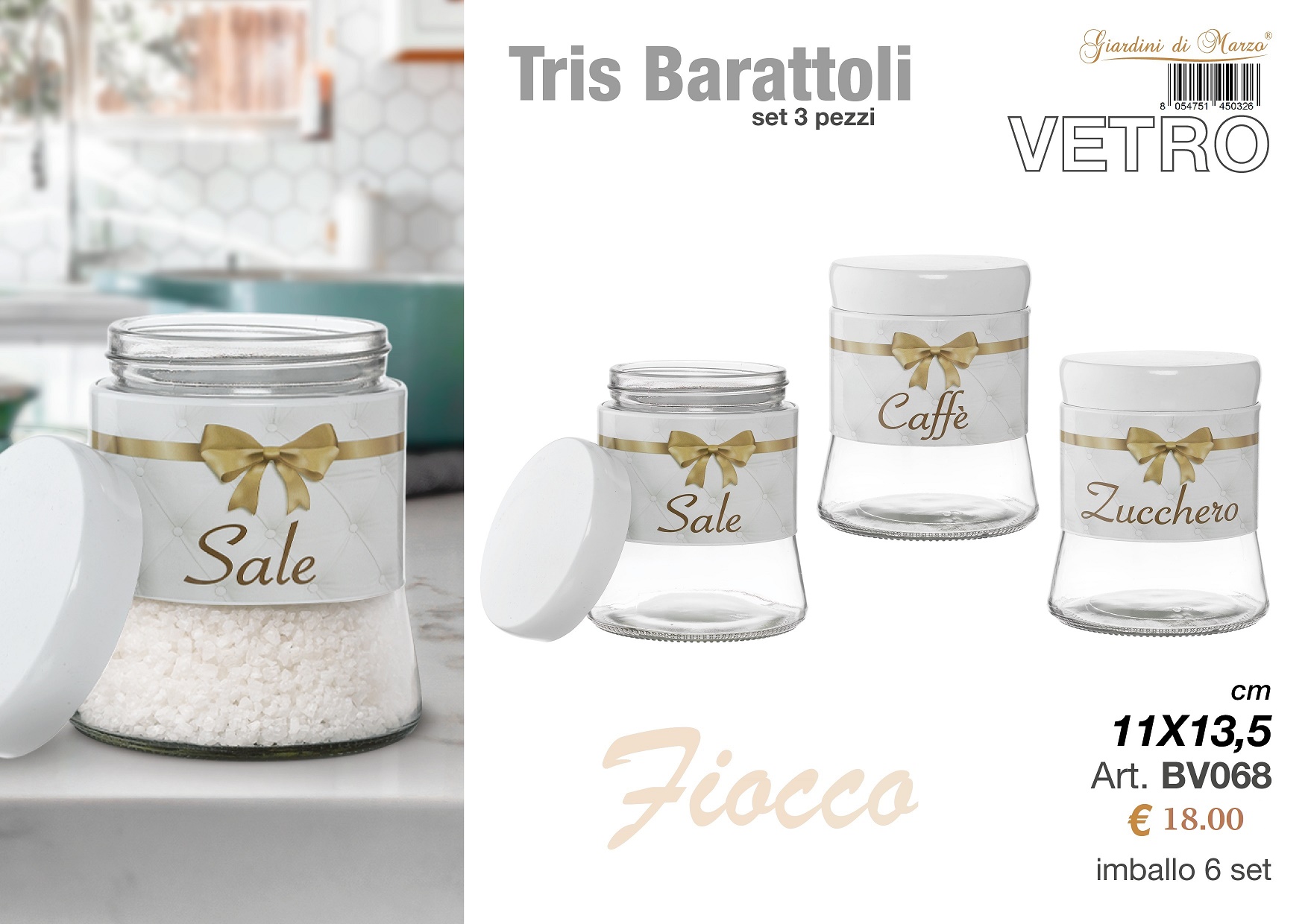 TRIS BARATTOLI FIOCCO TORTORA BV068 GIARDINI DI MARZO