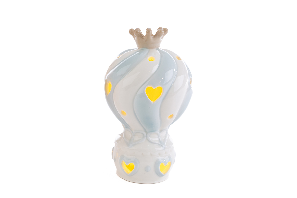Mongolfiera porcellana led celeste LE STELLE BOMBONIERE