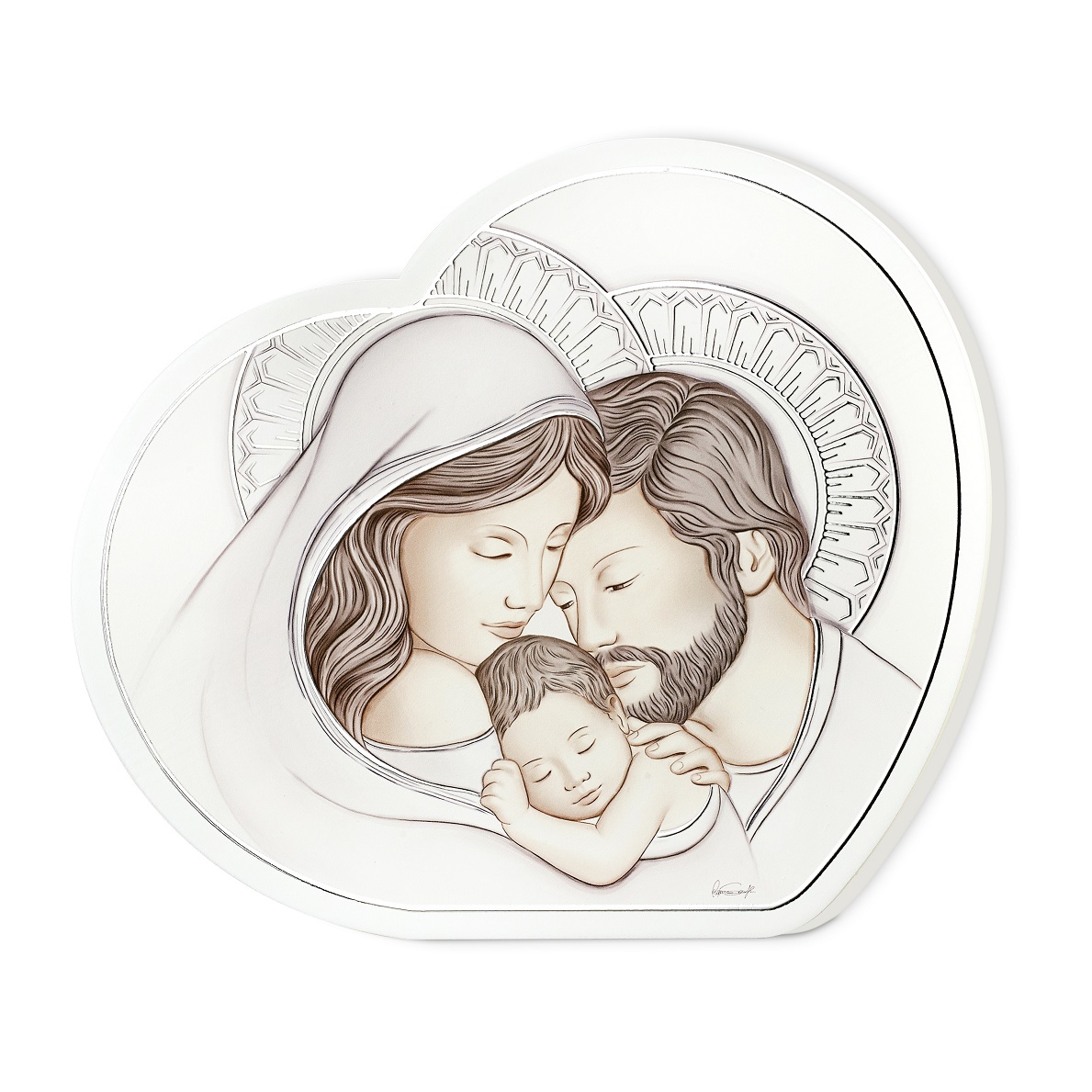 Pannello in legno sacra famiglia con dettagli foglia argento. Quadri icone sacre cm 20,5x18 Marca: Valenti & co.Cod. prodotto: 81652/3l