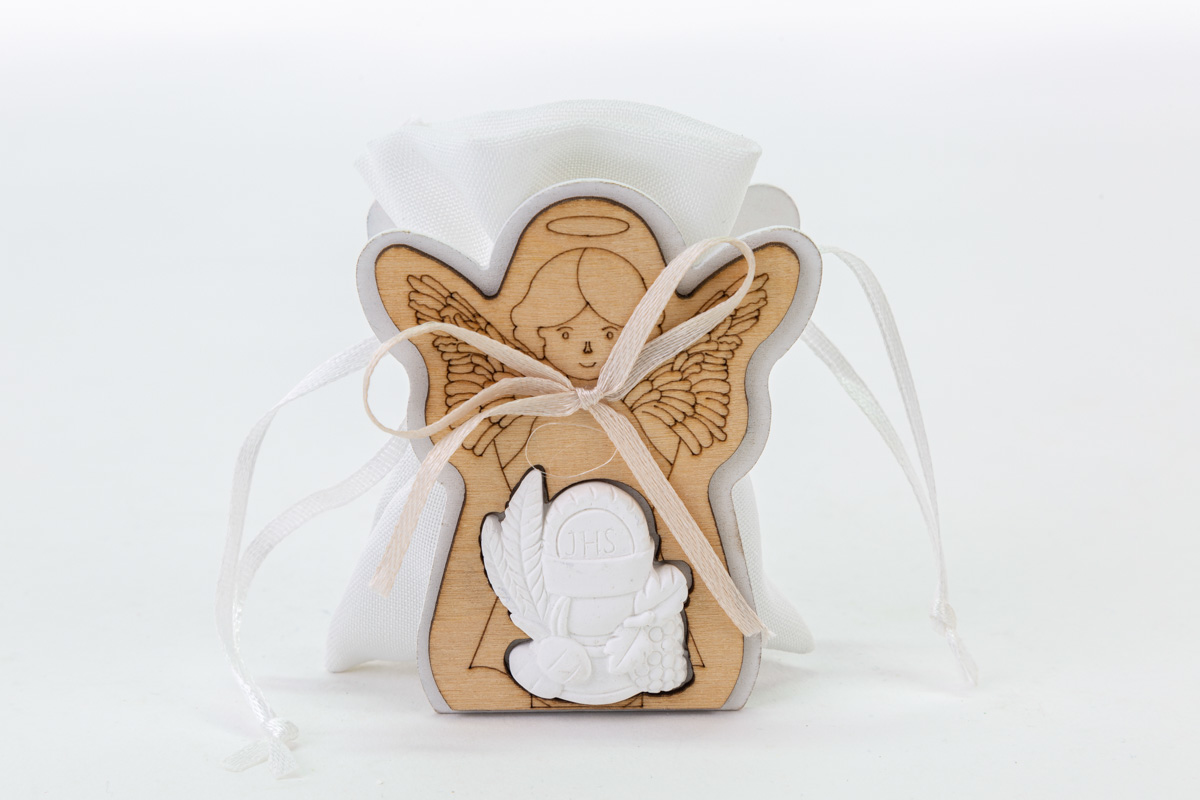 PORTA SACCHETTO LEGNO ANGELO COMUNIONE CONFEZIONE 48 PEZZI