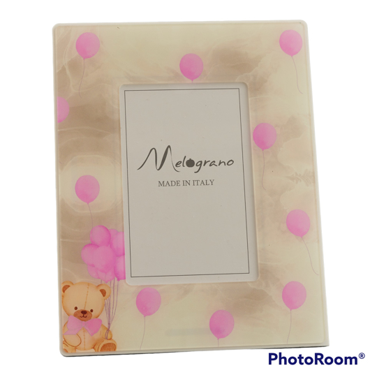 PORTAFOTO MEDIO ORSETTO ROSA RETRO LEGNO DECORO SU VETRO MISURA INTERNO FOTO 10X15 MISURA ESTERNA H.23X18CM COLLEZIONE MELOGRANO
