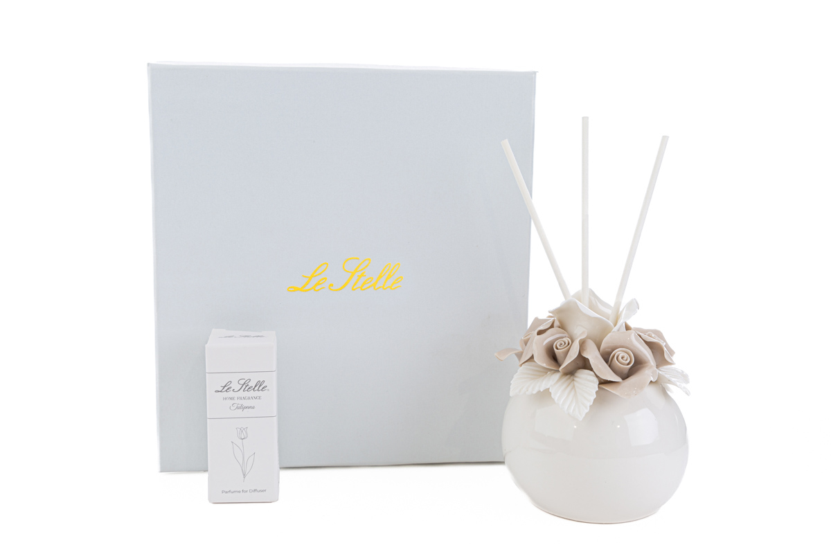 profumatore fiore porcellana beige c/astuccio d.8 x h.9,5cm CON ESSENZA LE STELLE BOMBONIERE