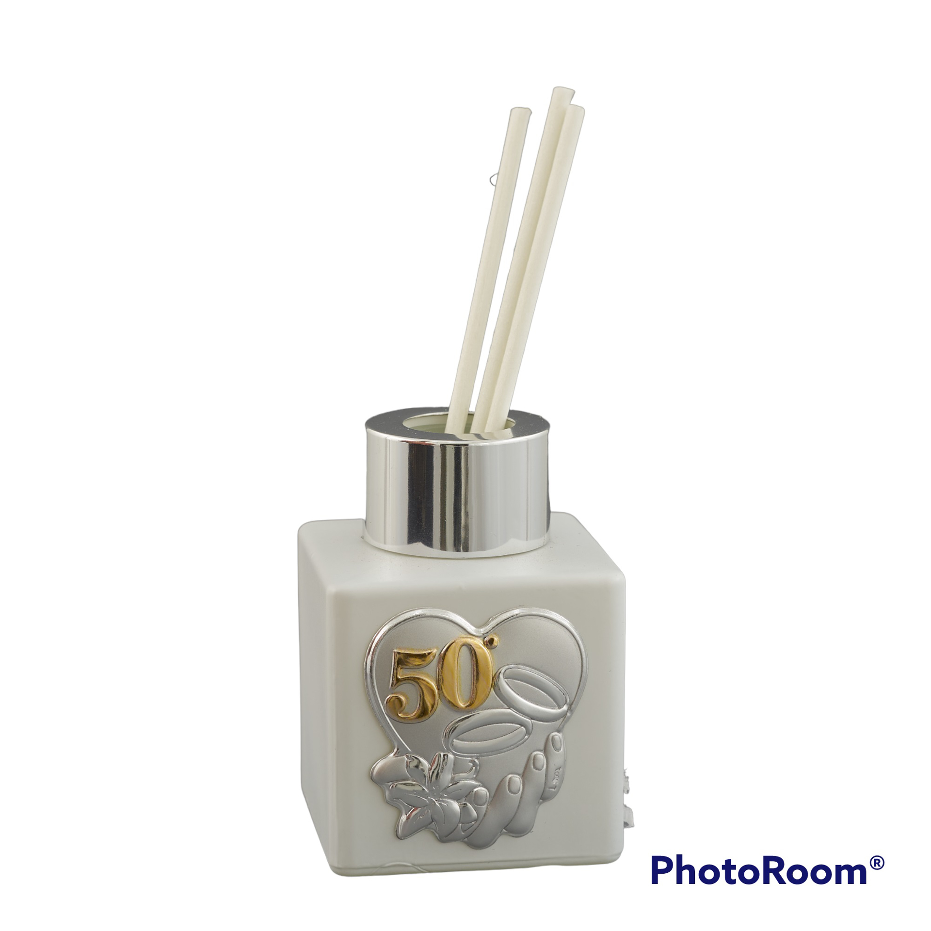 PROFUMATORE QUADRATO 50ML SATINATO CON PLACCA 50° ARGENTATA E ORO COLLEZIONE MELOGRANO