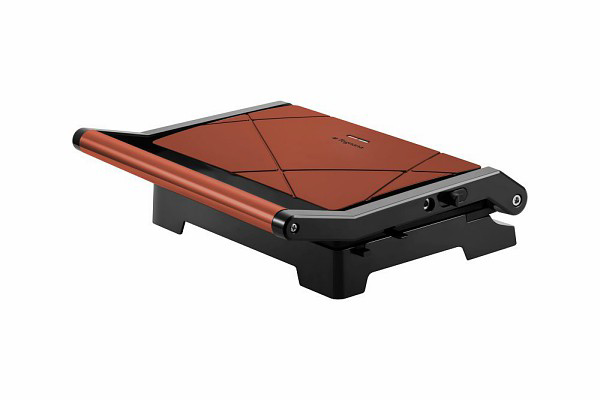 Piastre antiaderenti di grandi dimensioni 230x145mm Apertura a 180° e 105° Termostato Regolazione automatica della temperatura Ampia maniglia antiscottatura Spie di funzionamento e temperatura Dispositivo di sicurezza contro il surriscaldamento Potenza : 1000W Tensione di ingresso : 220-240Vac 50-60Hz