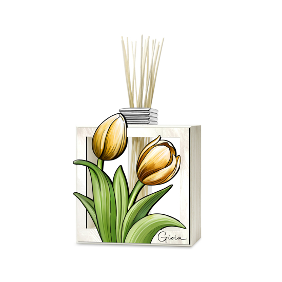 VASETTO PROFUMATORE 14X16,5 VALENTI & CO CON TULIPANI GIALLI